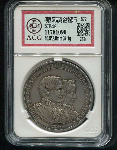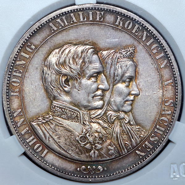 Двойной талер 1872 "Золотая свадьба Иоганна и Амалии Баварской" (Саксония) (в слабе) B