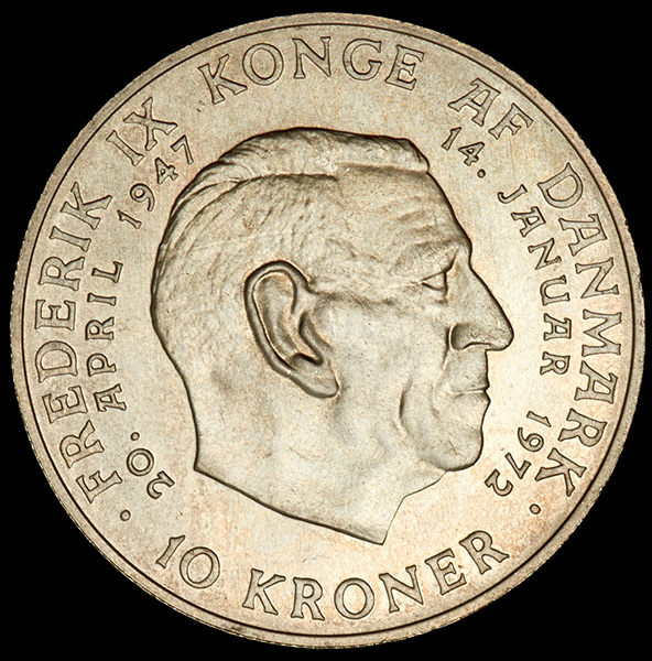 10 крон 1972 "Смерть Фредерика IX и вступление на престол Маргрете II" (Дания)