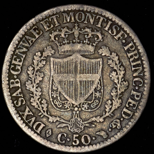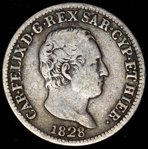 Отметка монетного двора: "Голова орла", "L" - Турин, Филлиппо Лави.