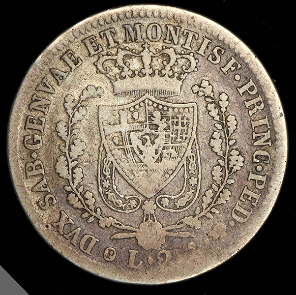 KM# 122. Серебро 900 пробы. Отметка монетного двор "P" - Генуя. Довольно редка.