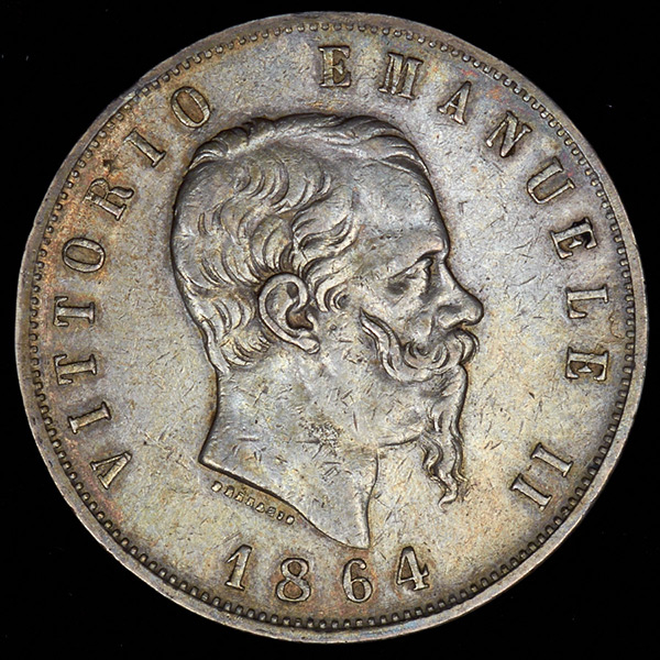 KM# 8. Король Виктор Эммануил II (1861 - 1878). Серебро 900 пробы. Монетный двор в Неаполе. Довольно редка.