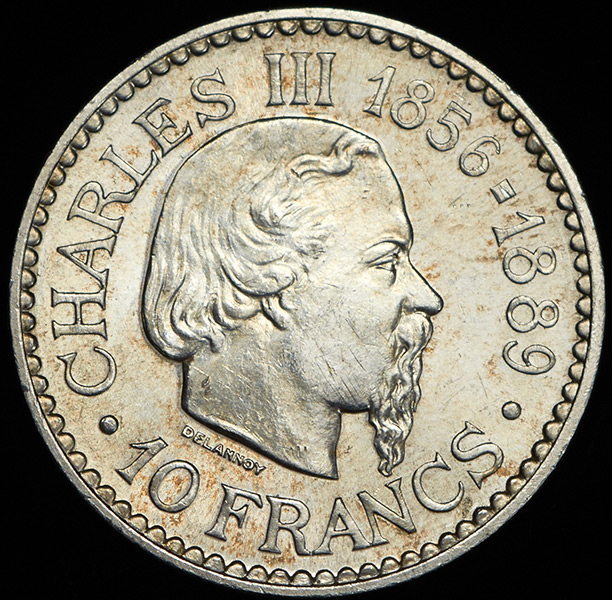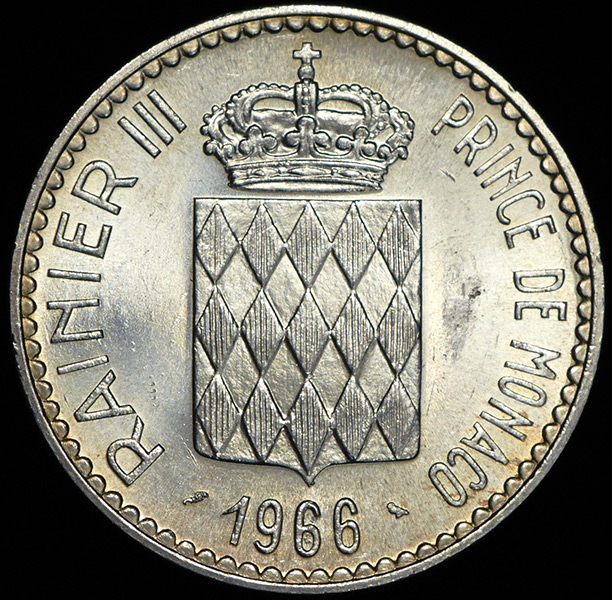 10 франков 1966 "110 лет вступлению на престол Чарльза III" (Монако)