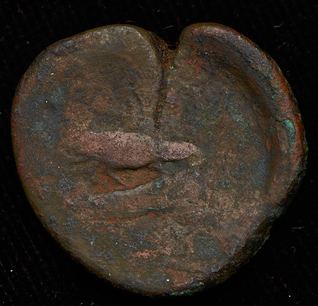 Аверс - голова Деметры. Реверс - Орел на дельфине. Надчекан Афина.