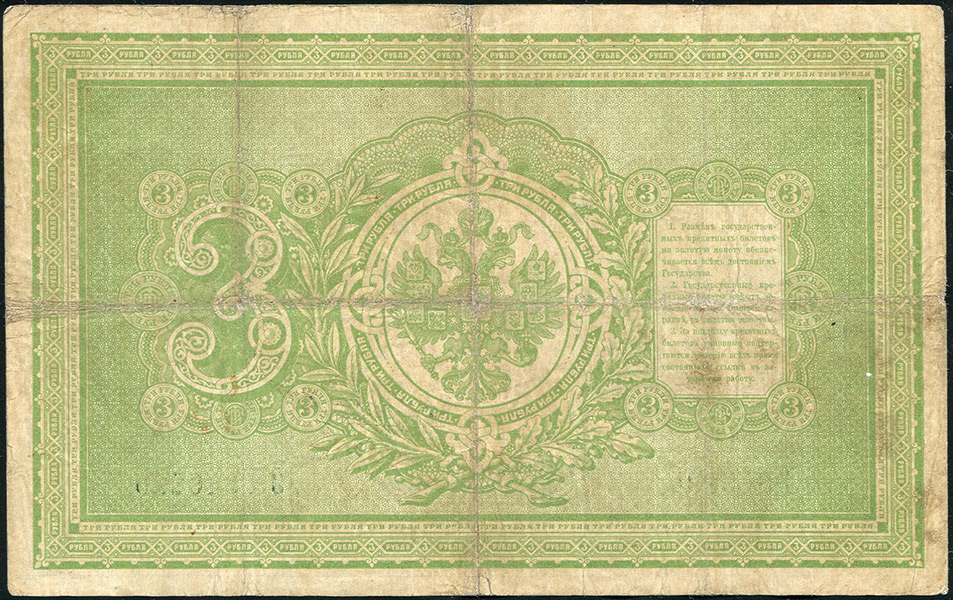 Государственный кредитный билет 3 рубля образца 1898 года, ЗЛ 846225. Управляющий Тимашев, кассир Чихиржин.