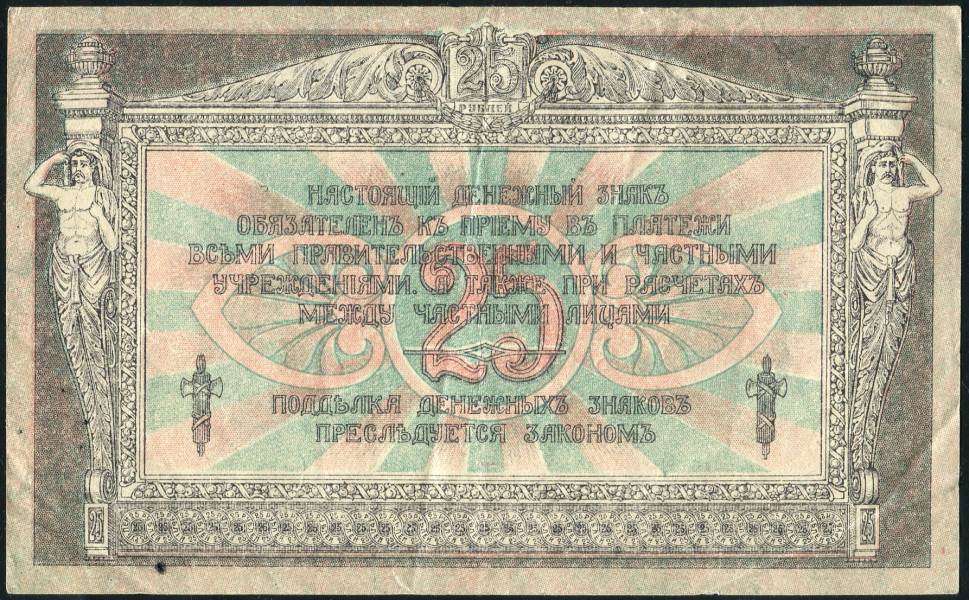 Денежный знак Ростовской-на-Дону Конторы Государственного Банка 25 рублей 1918 года, АЖ-32. Без в/з.