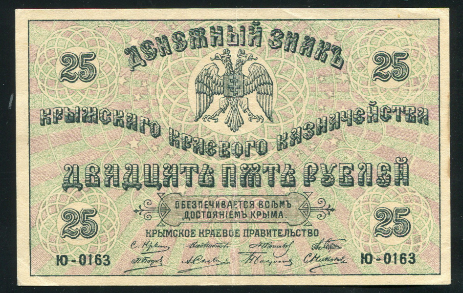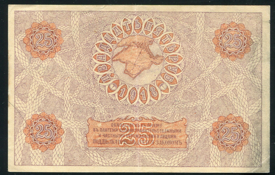 Денежный знак Крымского краевого казначейства 25 рублей 1818 года, Ю-0163. Выпуск советского правительства.