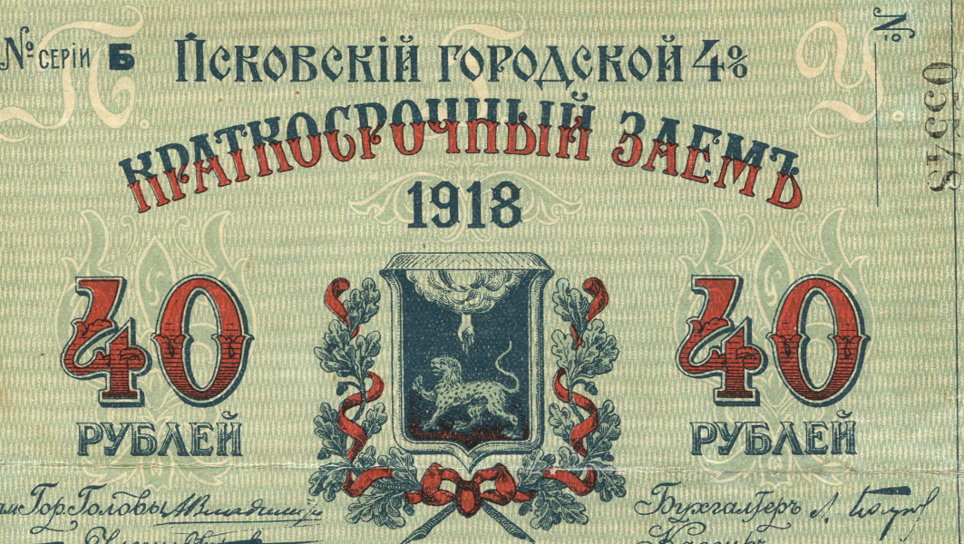Псковский городской 4% краткосрочный заем 40 рублей 1918