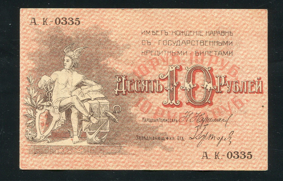 Совет бакинского городского хозяйства, 10 рублей 1918 года, А. К.- 0335. Без указания серии.