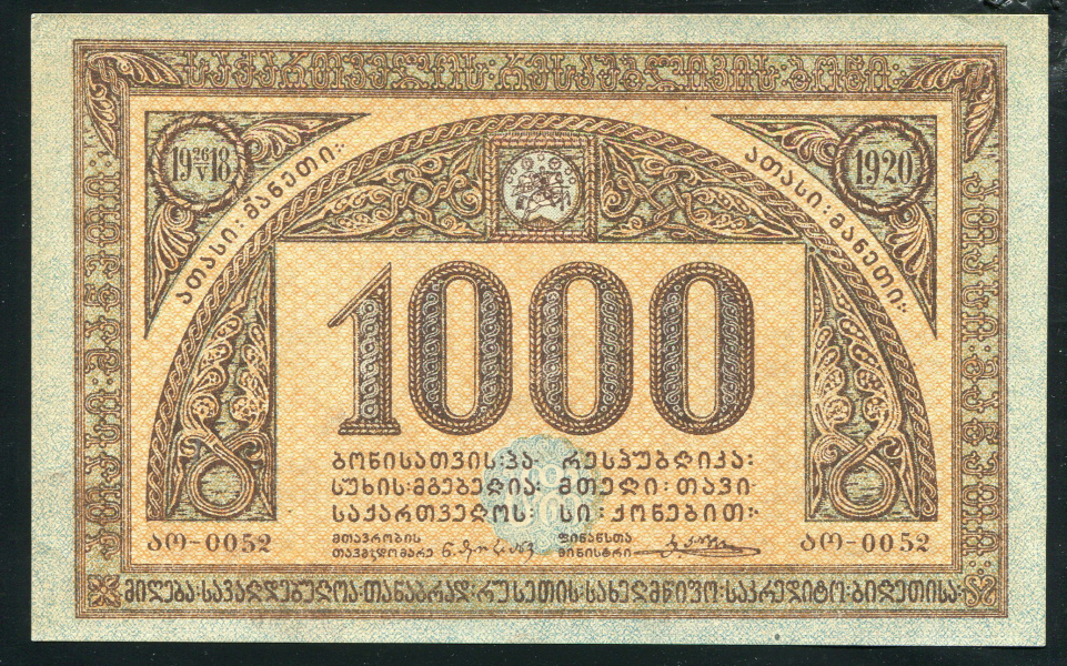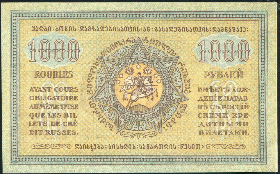 Бона Грузинской демократической республики 1000 рублей 1920 года.