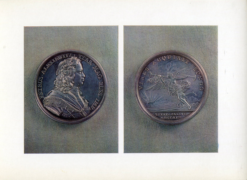 Набор из 16-ти открыток с фотографиями редких золотых, серебряных и медных монет, медалей, относящихся к эпохе Петра I, из собрания Государственного Эрмитажа.