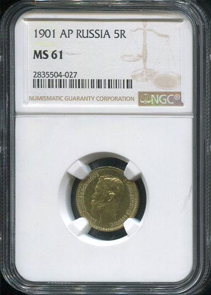 5 рублей 1901 (в слабе) (АР)