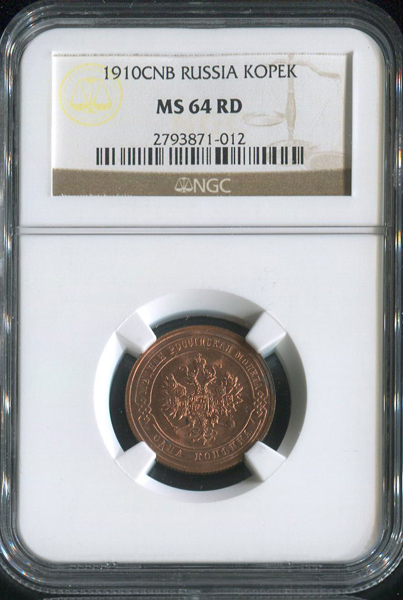 Копейка 1910 (в слабе) СПБ
