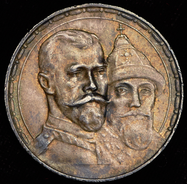Чеканен в память 300-летия царствования Дома Романовых.