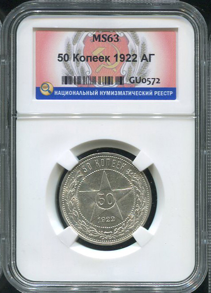 50 копеек 1922 (в слабе) (АГ)