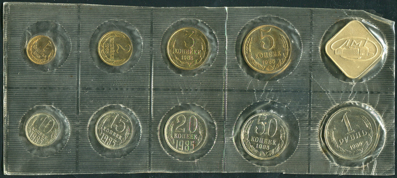 Годовой набор монет СССР 1985 (в мяг. запайке) ЛМД