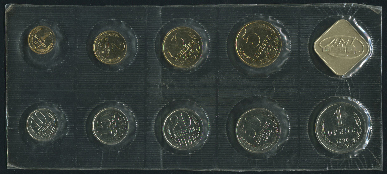 Годовой набор монет СССР 1986 (в мяг. запайке) ЛМД