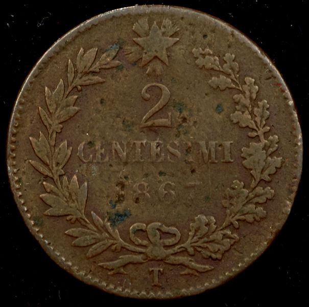 В 1867 году чеканка производилась в Милане и в Турине. В Турине тираж был в 10 раз меньше, чем в Милане.