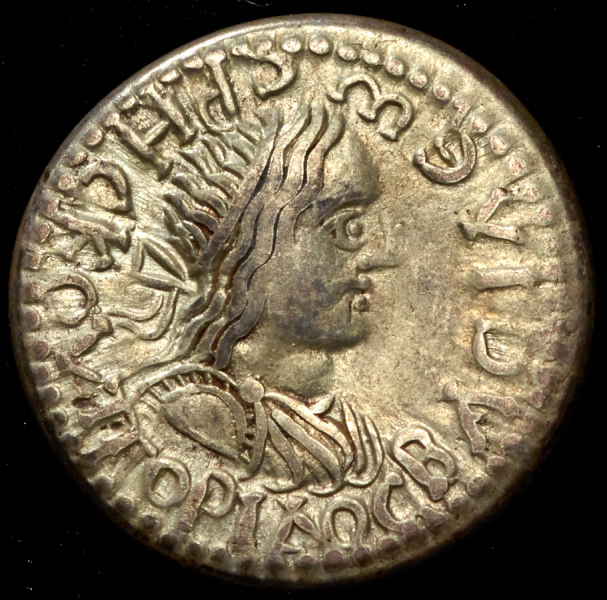 Легенда аверса "ΒΑCΙΛΕωC ΡΗСΚΟΥΠΟΡΙΔΟС". Бюст царя вправо.