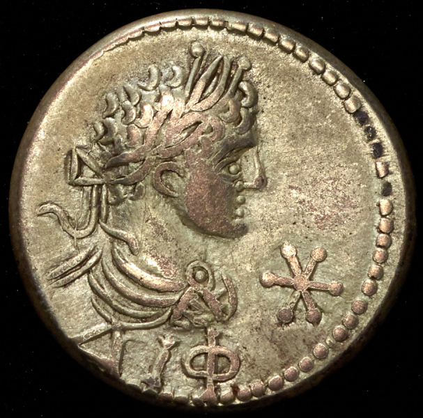 На реверсе изображена голова Каракаллы вправо. Дата ΑΙΦ (511 г. б.э.). Справа "звезда".