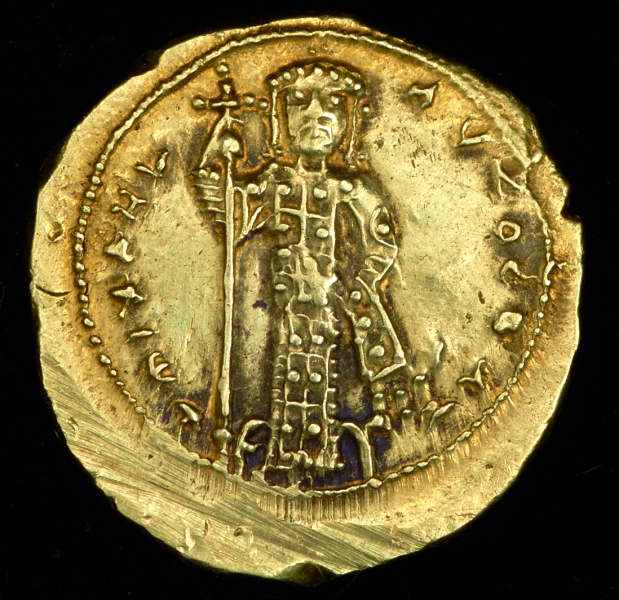 На аверсе Дева Мария и "MHP QV". На реверсе Михаил VI и "+MIHAHЛ AUTOCRAT".