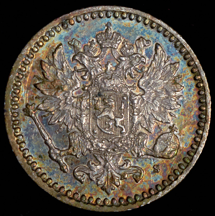 Уздеников 4689. Биткин 637.Гельсингфорсский монетный двор. Для Финляндии.Радужная патина.