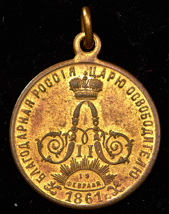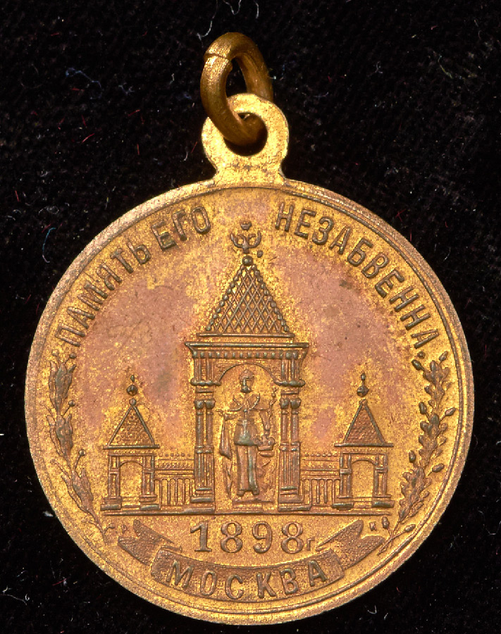 Легенда одной стороны "Благодарная Россия царю освободителю 19 февраля 1861 г.", другой "Память его незабвенна 1898".