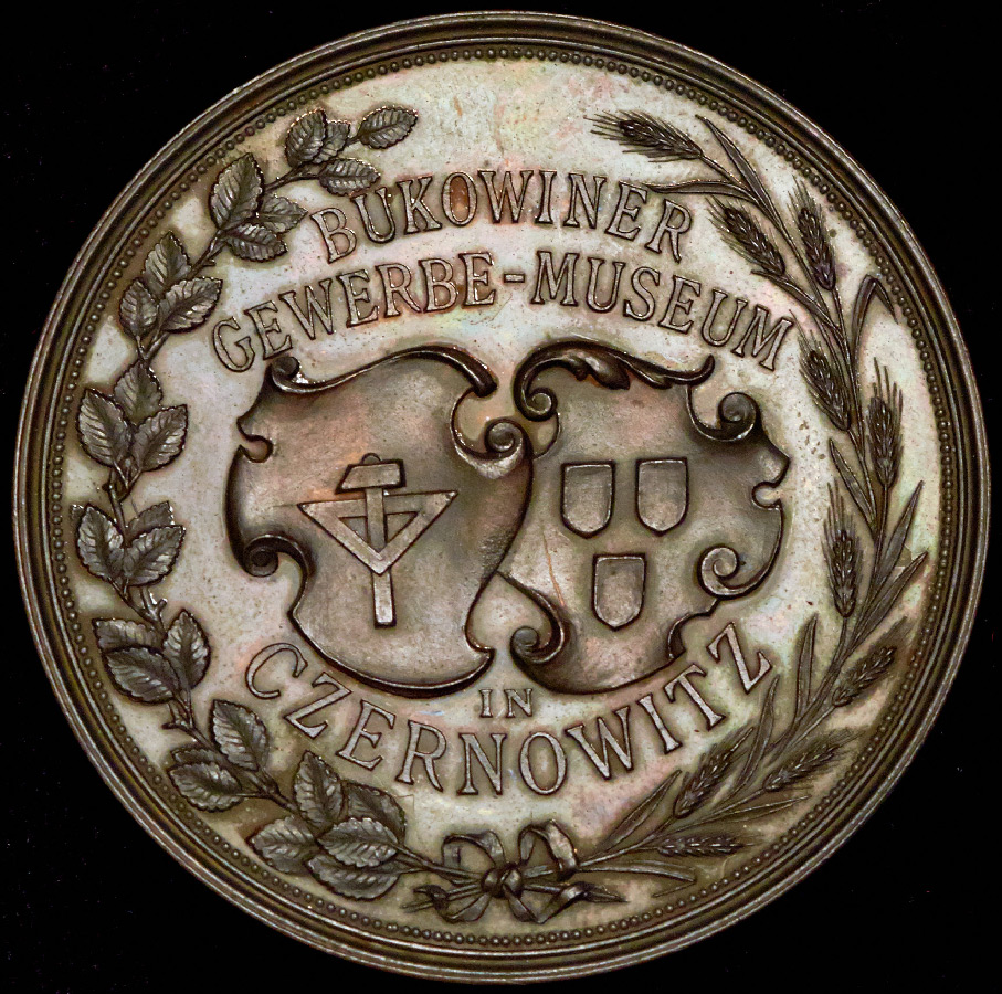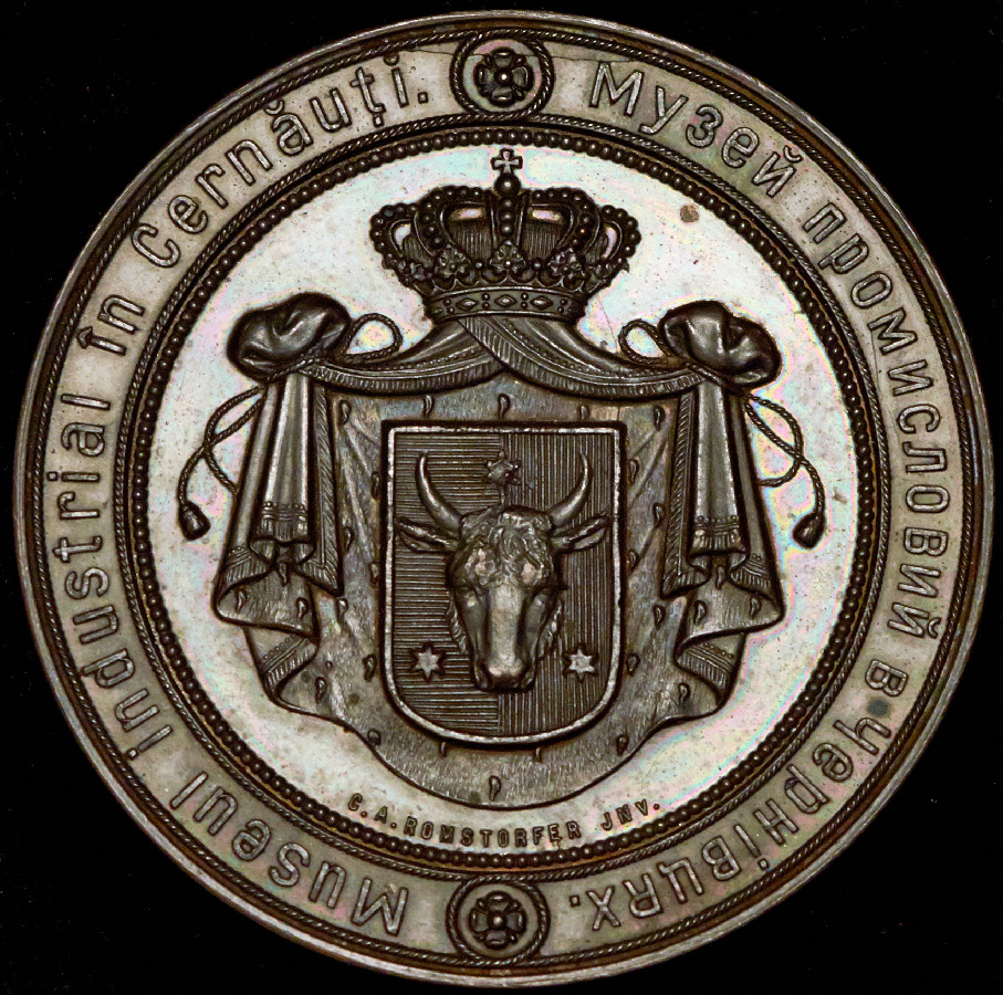На аверсе под гербом Буковины подпись медальера "C.A. ROMSFORFER JNV.".