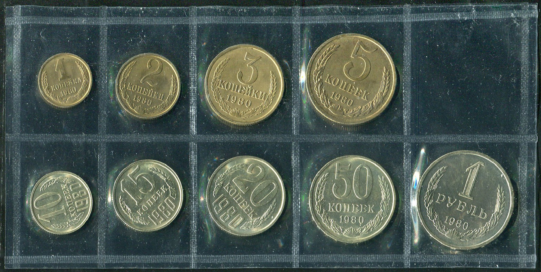 Годовой набор монет СССР 1980 (в мяг. запайке)