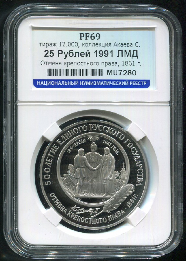 25 рублей 1991 "Отмена крепостного права 1861 г," ЛМД