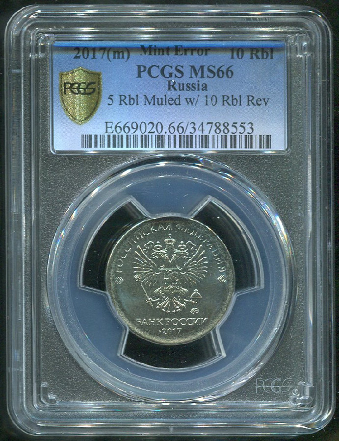 Брак чекана, т.н. "перепутка": при чеканке использовались штемпеля монет разных номиналов - штемпель реверса 10 рублей и штемпель аверса от 5 рублей.
