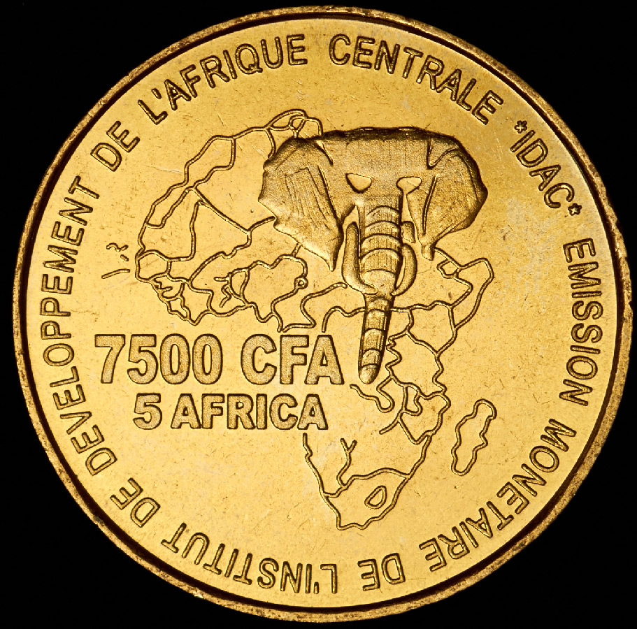 Легенда реверса "EMISSION MONETAIRE DE L'INSTITUT DE DEVELOPPEMENT DE L'AFRIQUE CENTRALE *IDAC*"