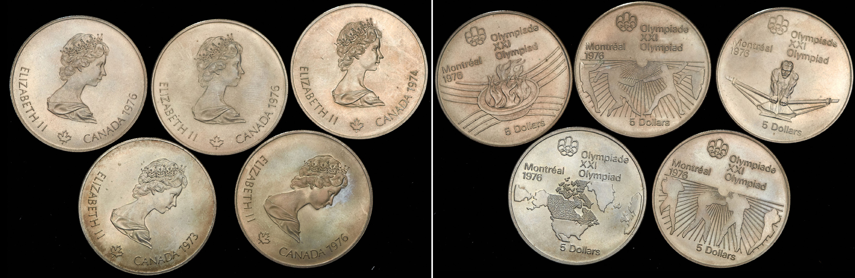 Набор из 7-ми монет 5 долларов "XXI Олимпиада в Монреале" (Канада)
