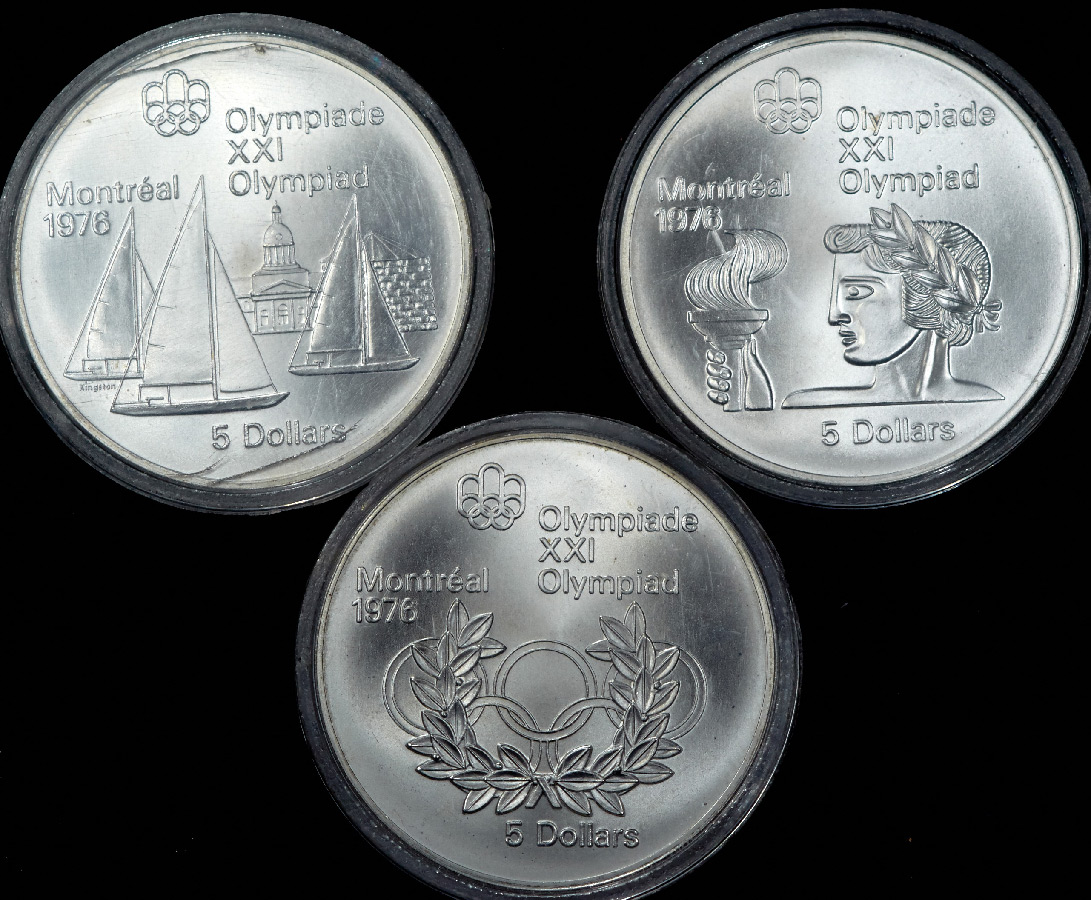 Набор из 3-х монет 5 долларов "XXI Олимпиада в Монреале" (Канада)
