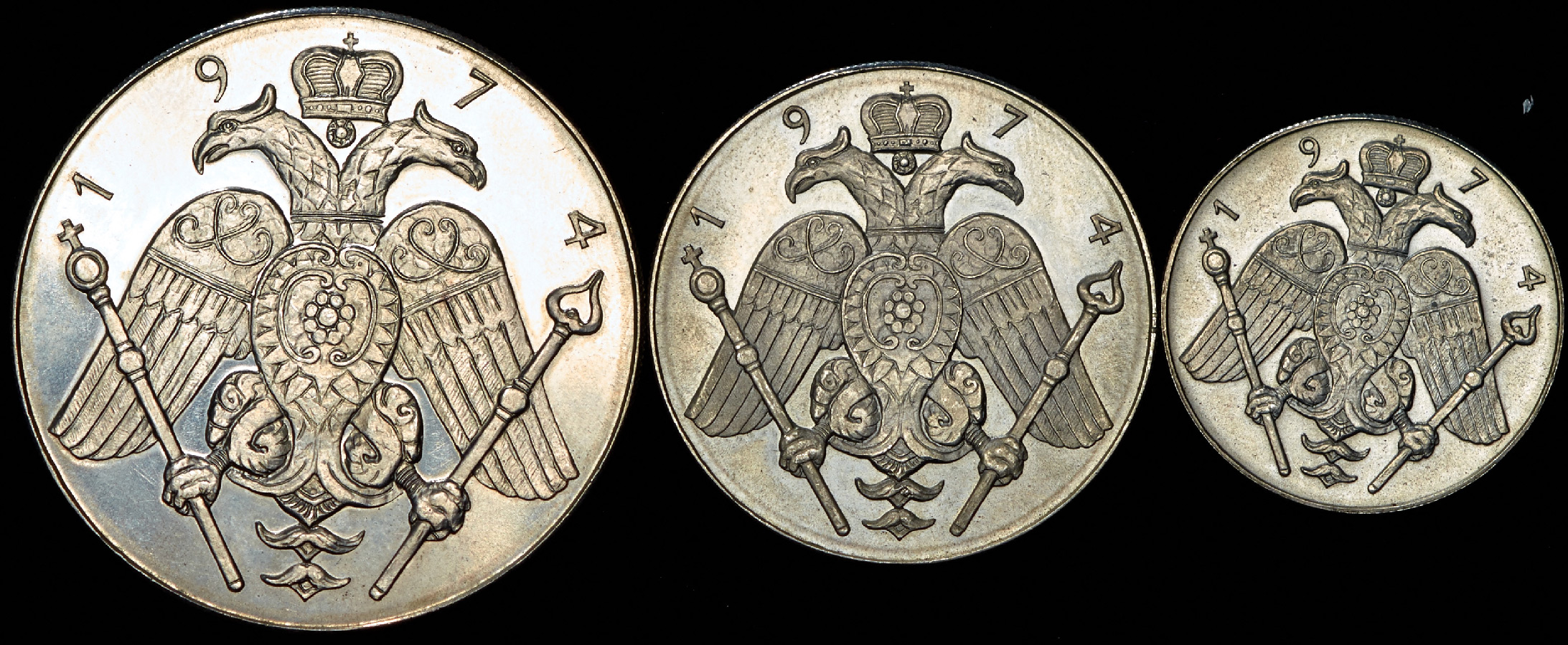 Набор из 3-х монет: 3, 6 и 12 фунтов 1974 года.