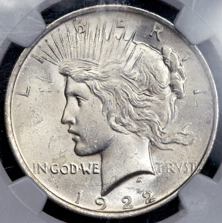 Первоначально Антонио де Франчиски планировал поместить на реверсе белоголового орлана — геральдический символ США, держащего в когтях разломанный меч. Однако такое изображение могло символизировать также и поражение. В связи с этим гравёр Морган заменил меч на оливковую ветвь, которая сама по себе символизирует мир. Орёл сидит на скале, на которой находится надпись «PEACE». Благодаря ей, монета получила своё название «мирного доллара».