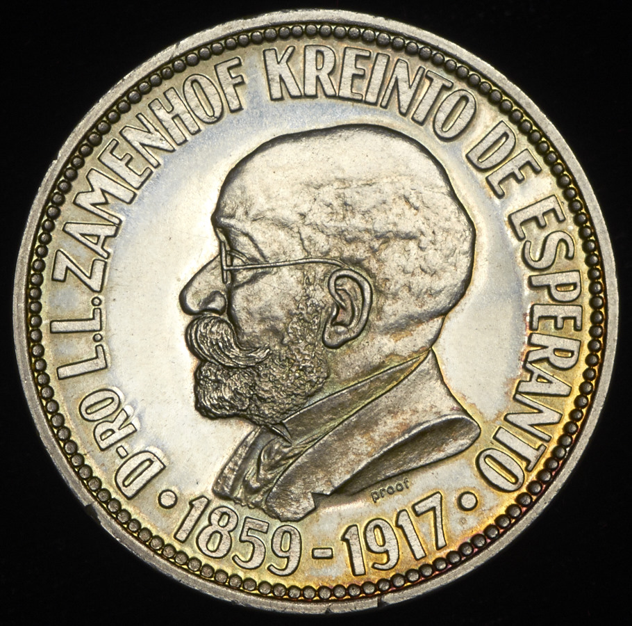 На медали изображен доктор, придумавший эсперанто.