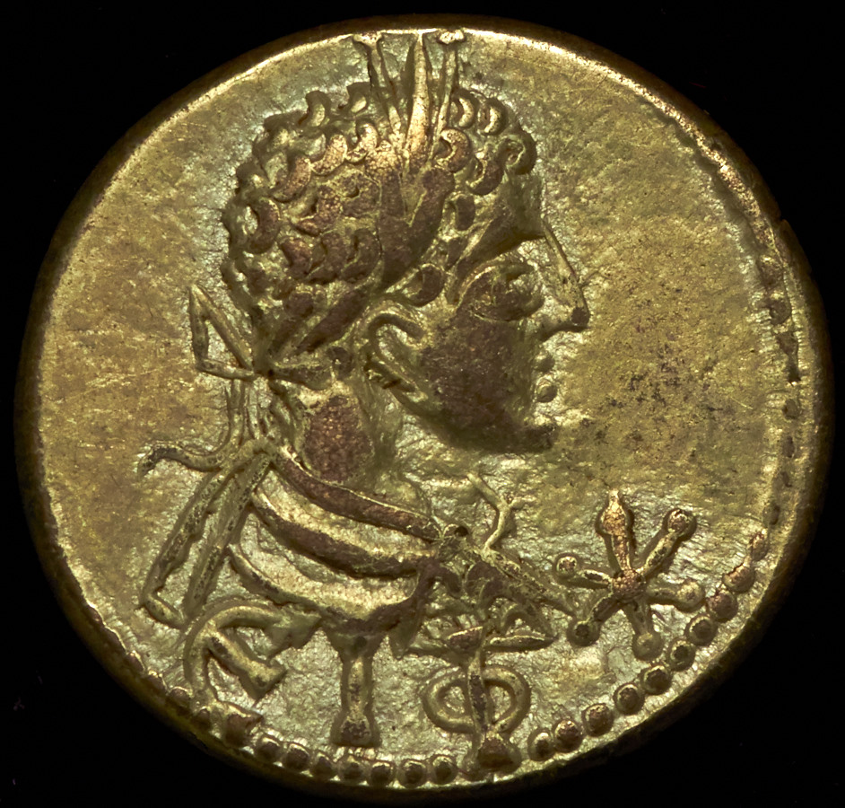 На реверсе изображена голова Каракаллы вправо. Дата ЕΙΦ (515 г. б.э.). Справа "звезда".