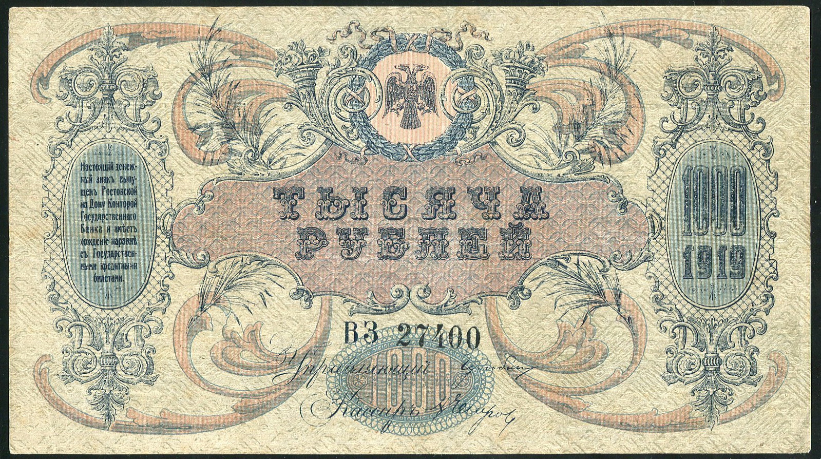Денежный знак 1000 рублей Ростовской-на-Дону Конторы Государственного Банка, ВЗ 27400