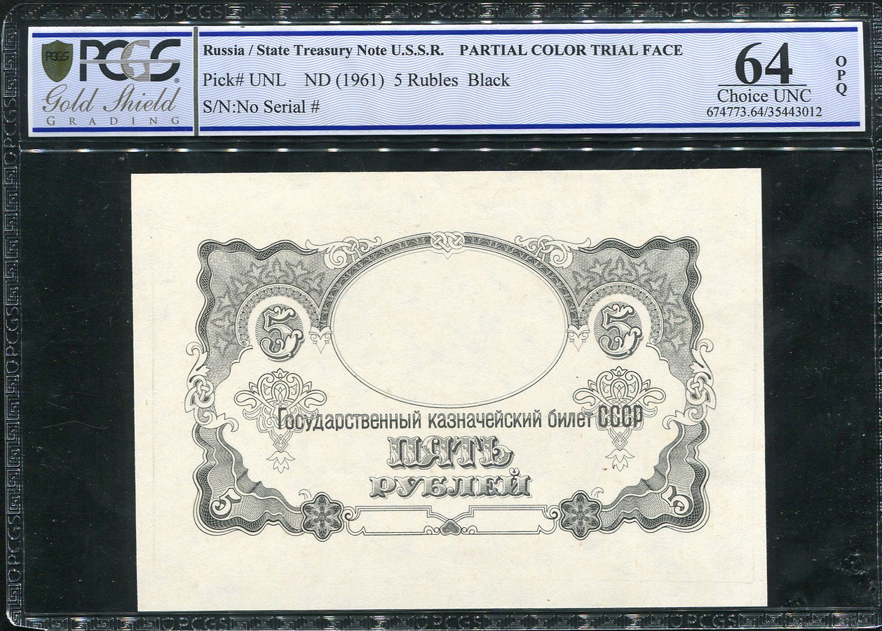 Пробный оттиск 1958 года проекта банкноты, из разрабатываемых в ходе подготовки к реформе 1961 года.