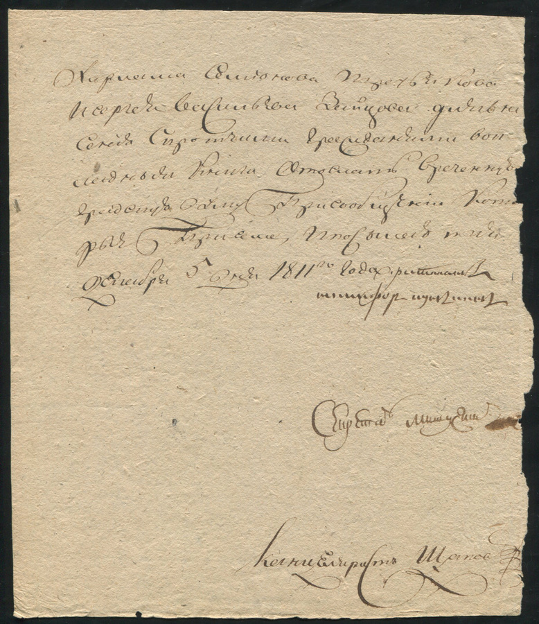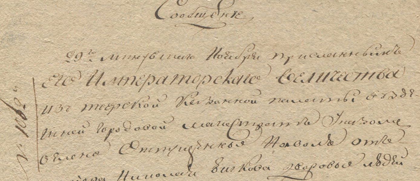 29го минувшего ноября присланнымъ Его Императорского величества изъ Тверской Казенной палаты в здешний городовой магистрать указомъ велено отпущенных на волю оть майор Николая Юшкова дворовых людей Сергея Васильева и Харлама Семенова поместить в кашинское мещанство ... благодатей причислить со 2-й сего года половины июля въ здешнем магистрате определено означенных мещань...."