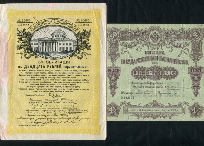 - Билет государственного казначейства 50 рублей 1914