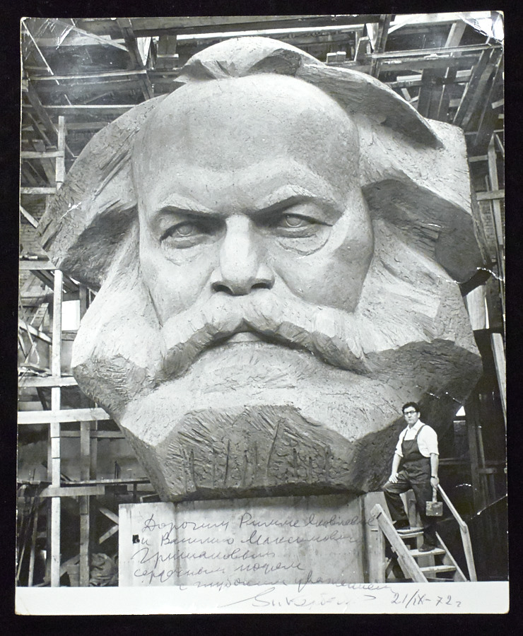 Фотография "Скульптура Карлу Марксу и ее автор, Лев Кербель" 1972