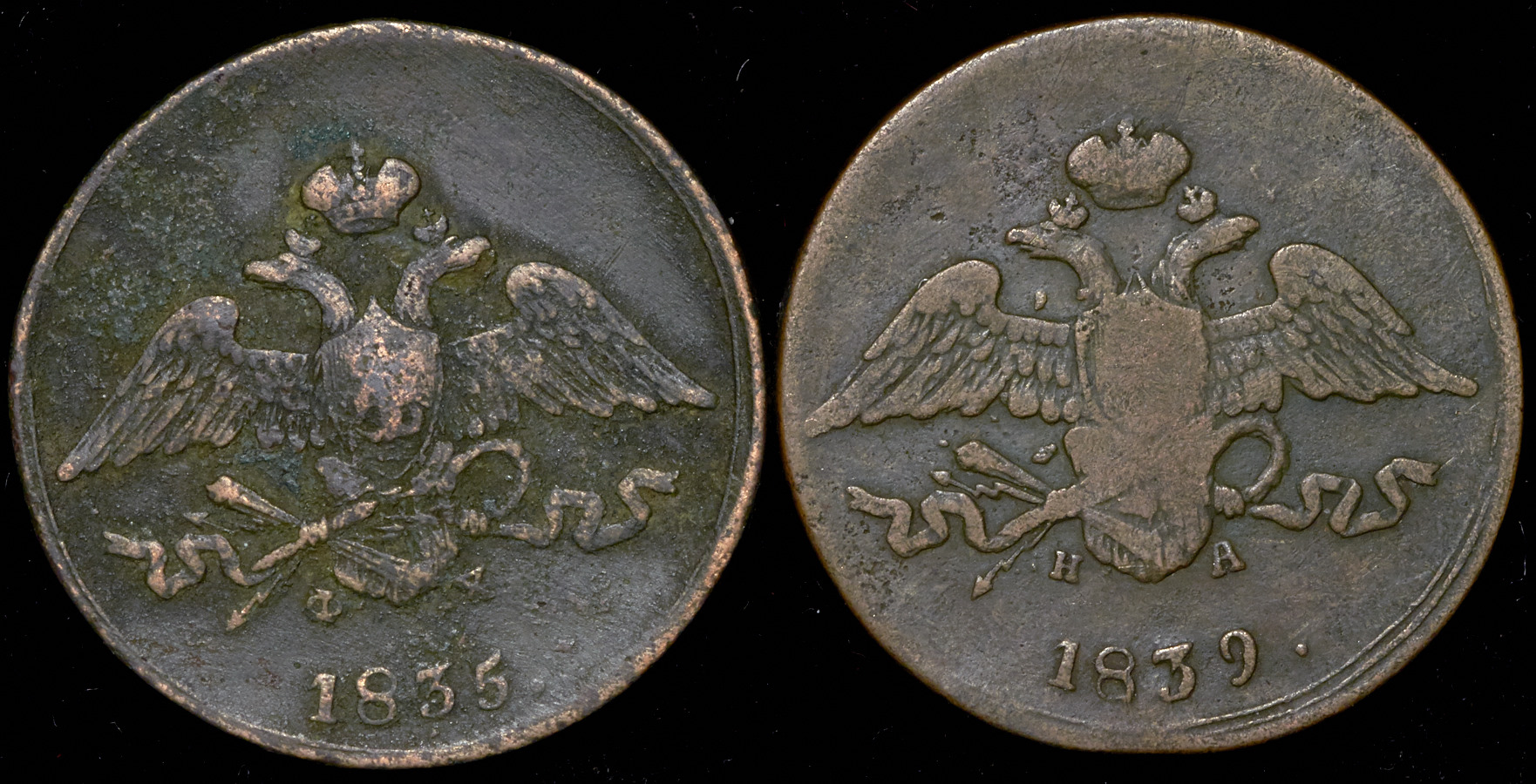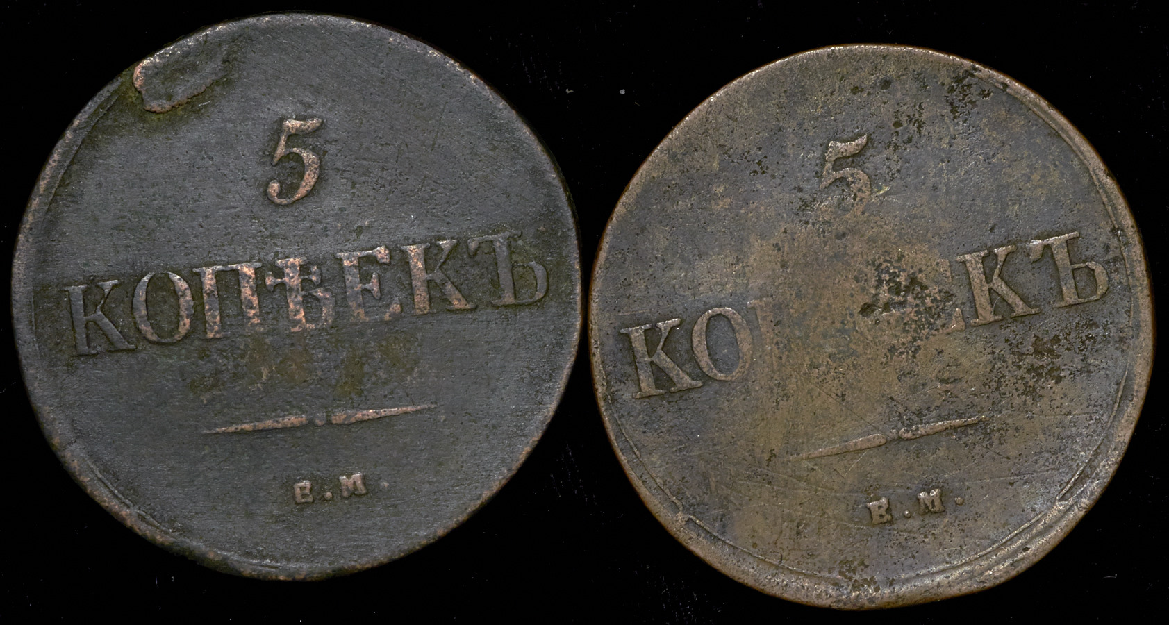 Набор из 2-х медных монет 5 копеек (Николай I)