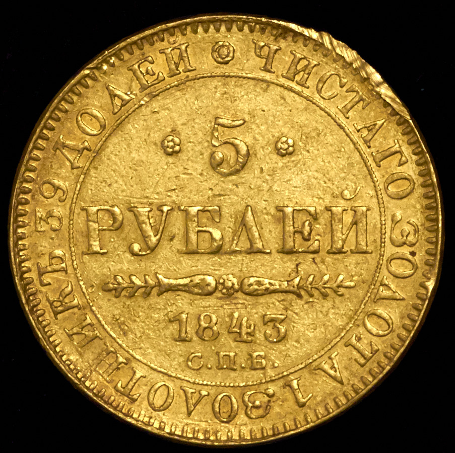 5 рублей 1843 СПБ-АЧ