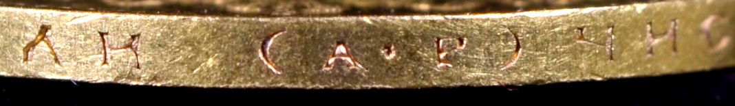 В гуртовой надписи т.н. "виселица". Буква "Р" в "АР" образована из буквы "Г".