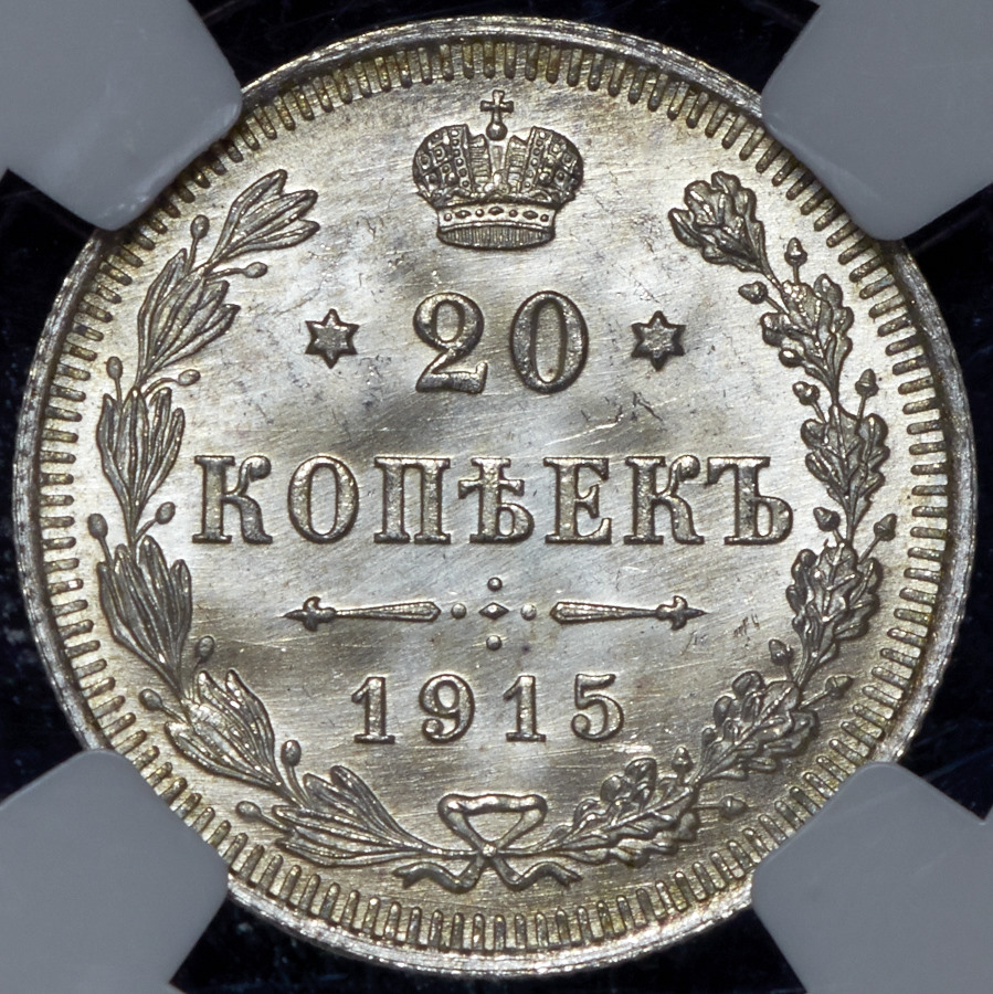 "После начала первой мировой войны, в которой противником России была германия, русской столице в 1915 г. вместо "немецкого" названия - Санкт-Петербург - было присвоено русское - Петроград. В связи с этим со всех русских монет (разменных серебряных и медных) было снято обозначение Петербургского монетного двора - "СПБ" (т.е. "Санкт-Петербург"), однако другого обозначения до 1917 г. так и не было установлено."
