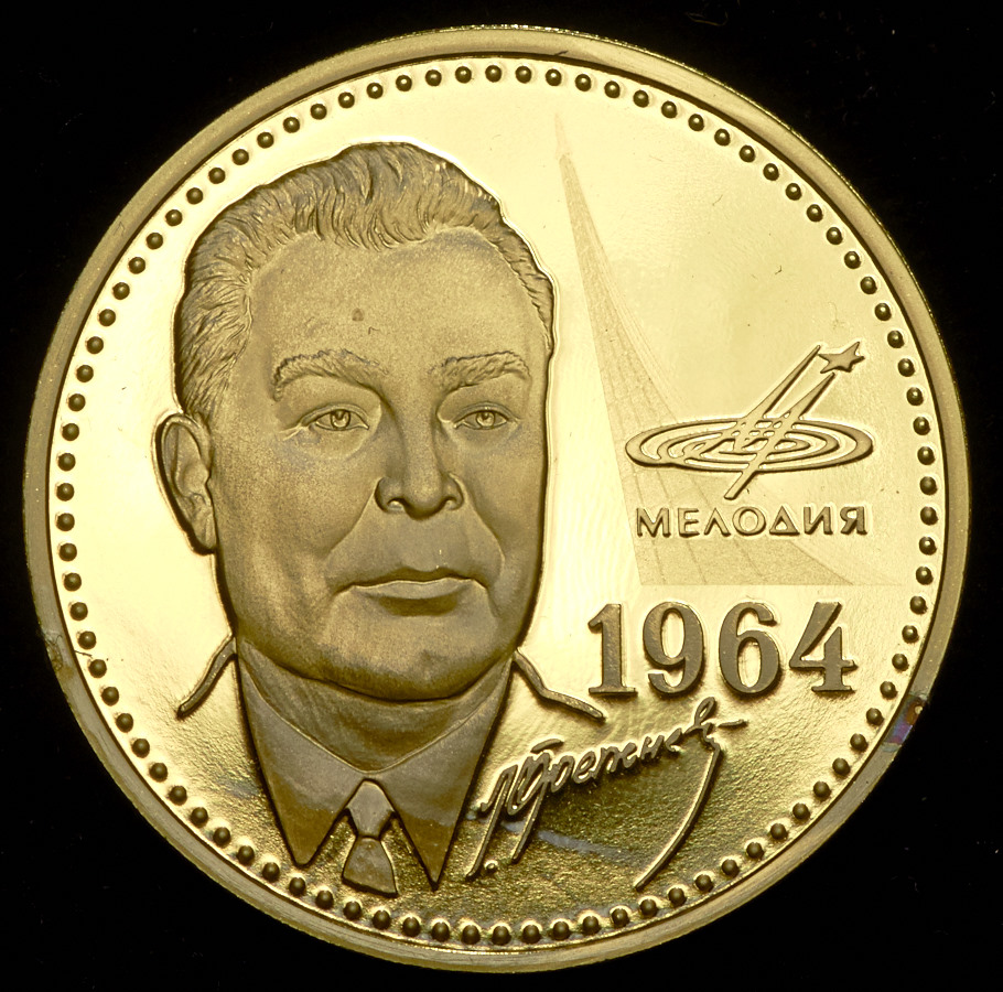 Монетовидный жетон "Один полтинник. 1964 год" с портретом Л.И. Брежнева.