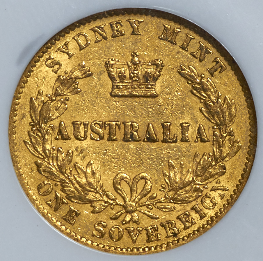 Легенда реверса "SYDNEY MINT / AUSTRALIA / ONE SOVEREIGN".
