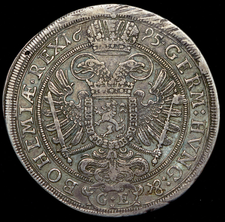 Этот однолетний тип довольно редок. Производство пражского монетного двора сильно сократилось после разрушительной Тридцатилетней войны. Это был первый талер, выпущенный с 1674 года.