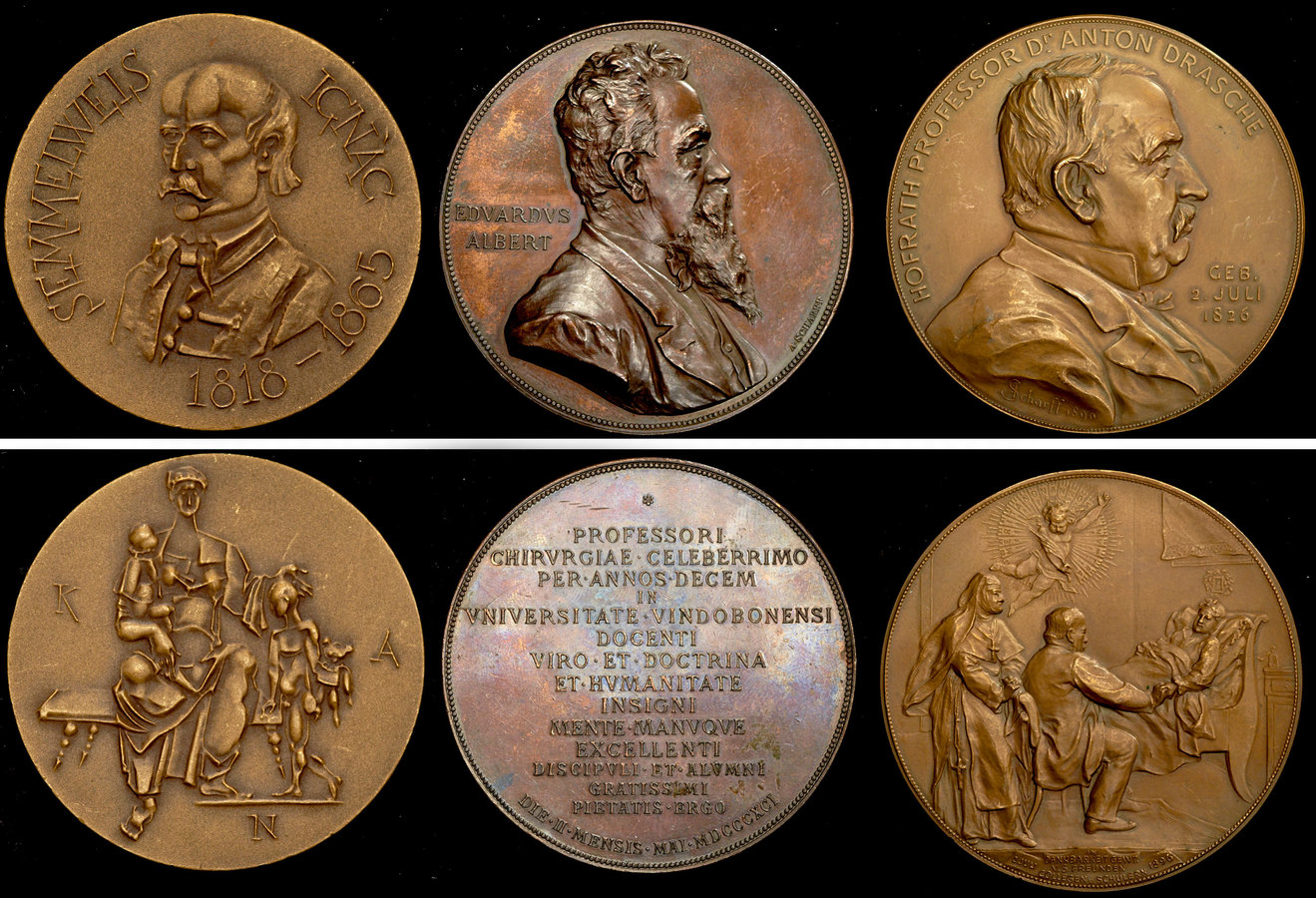 В набо вошли медали посвященные выдющимся медикам, таким как: Эдвард Альберт, Андреас Либер, Рудольф Вирхов, Антон Драше, Игнац Земмельвейс.